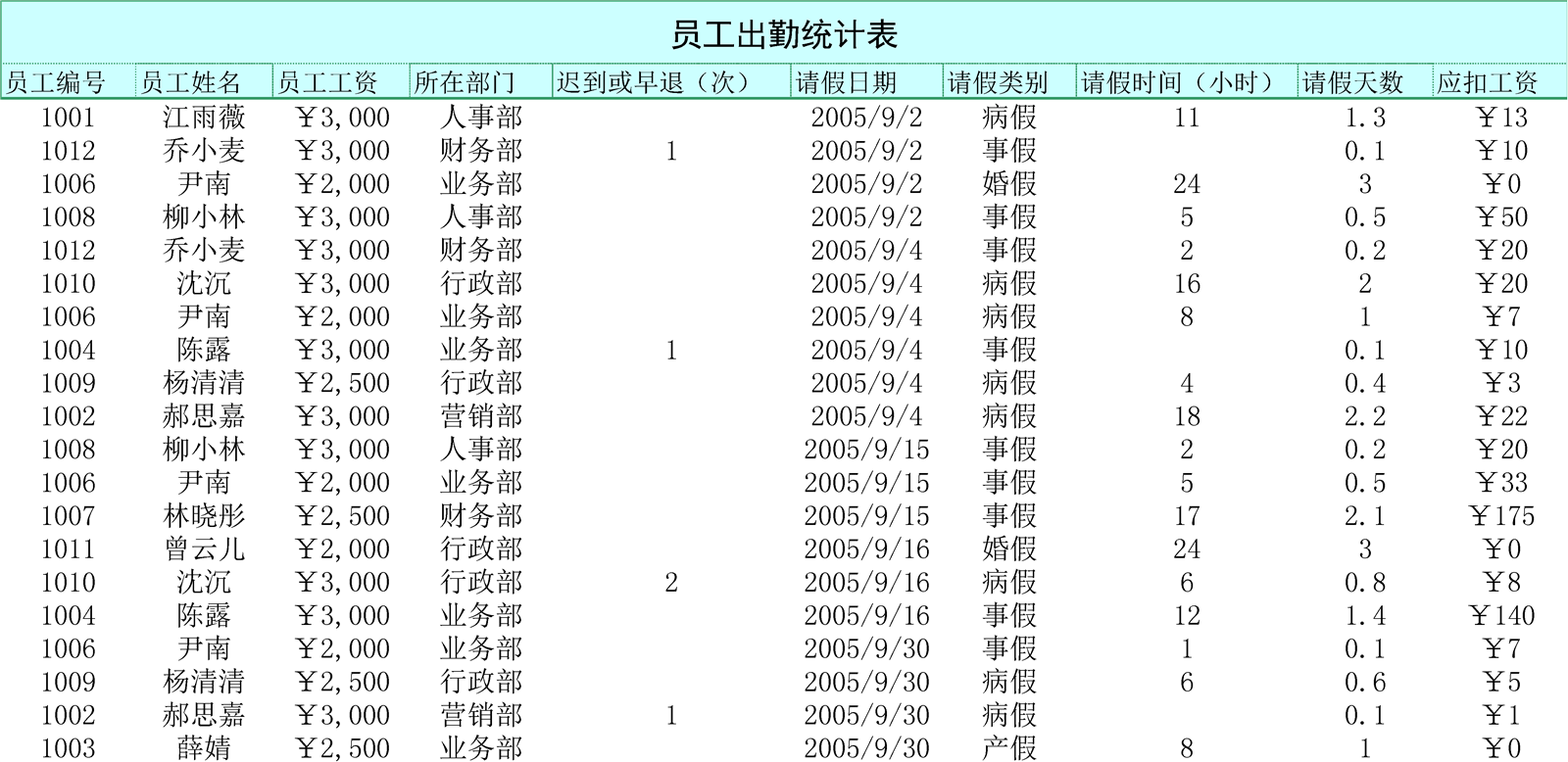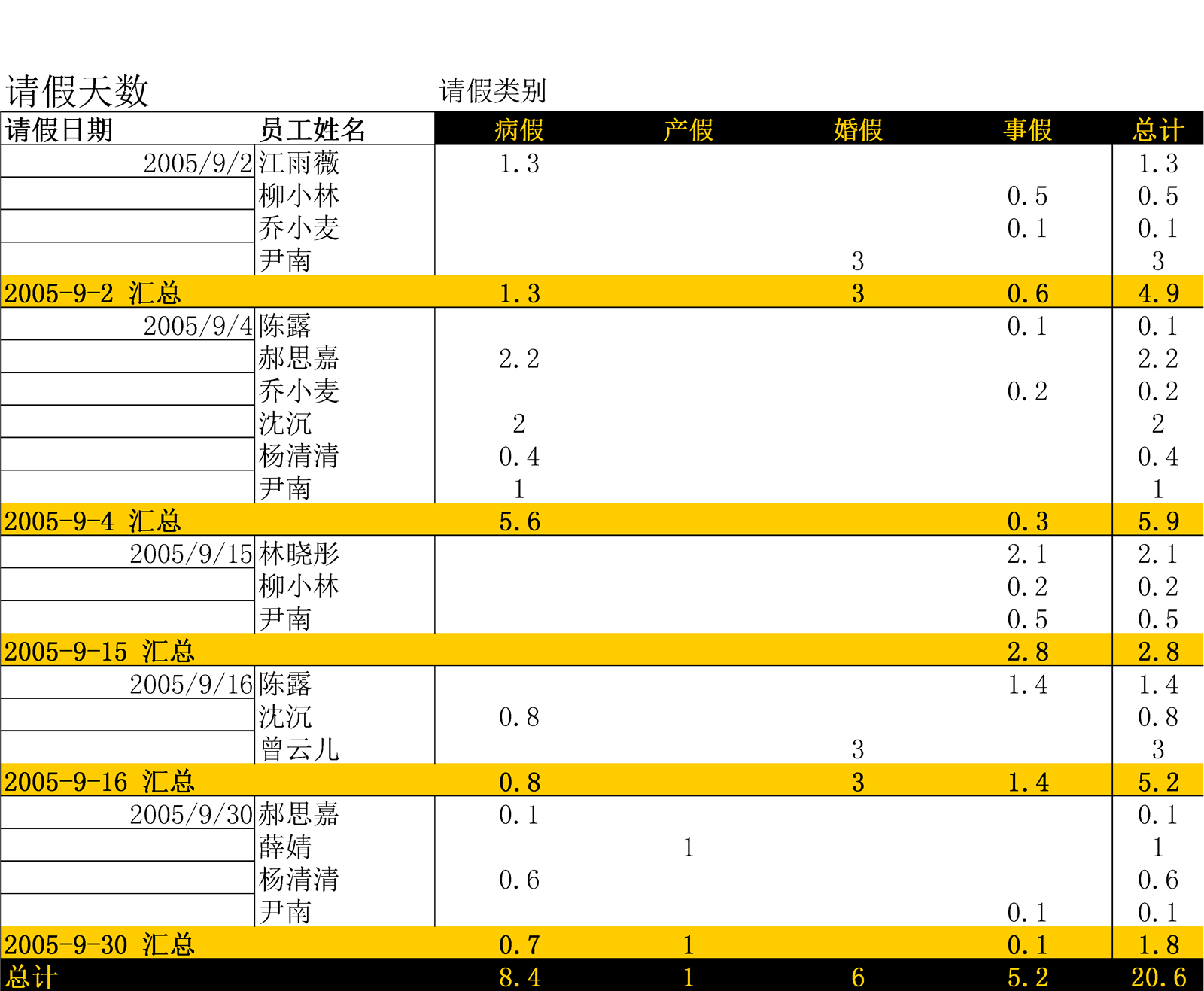 出勤表介紹: