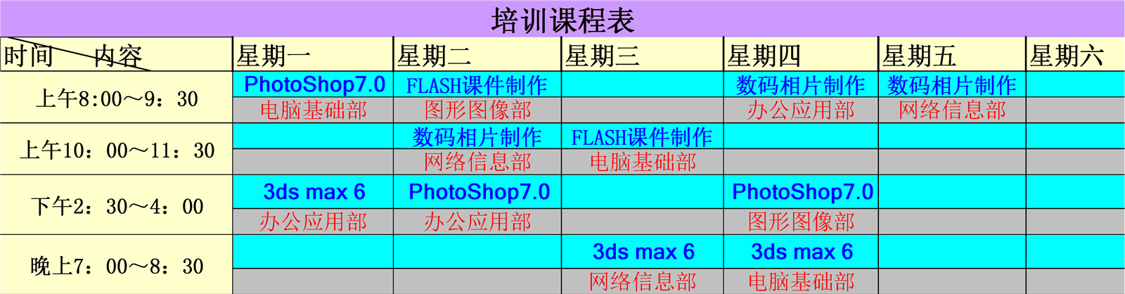 日程安排表介紹: