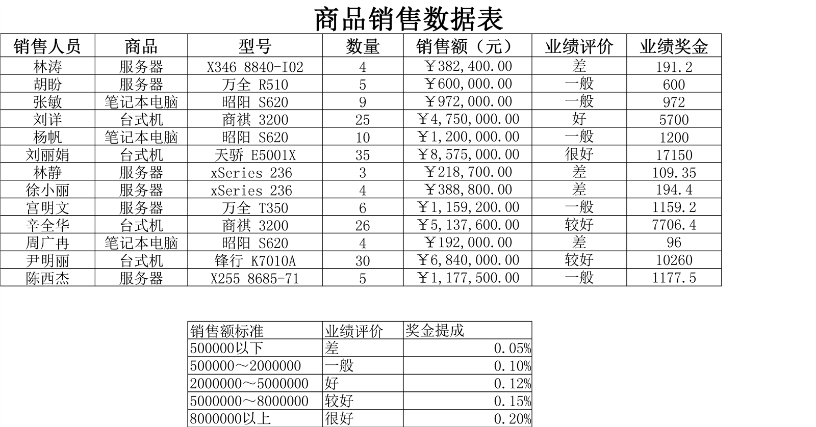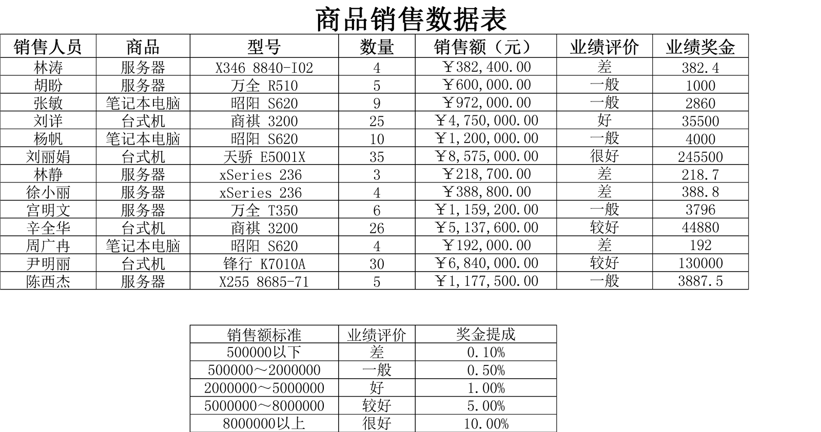 商品銷售數據表介紹: