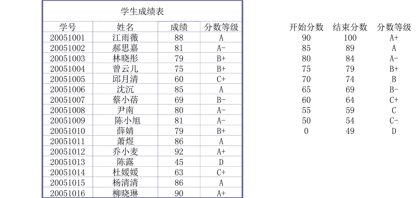 學生成績表介紹: