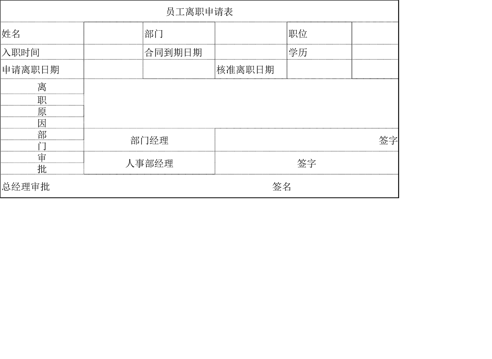 員工離職申請表介紹: