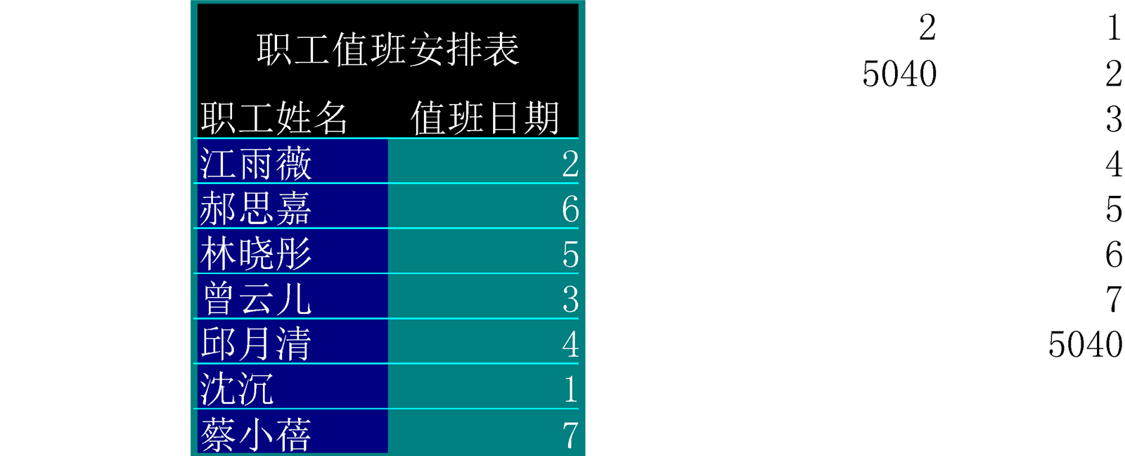 值班安排表介紹: