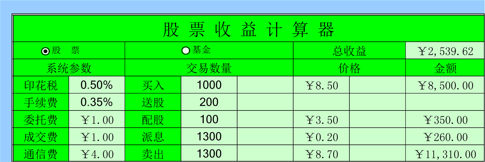 制作股票收益計算器介紹: