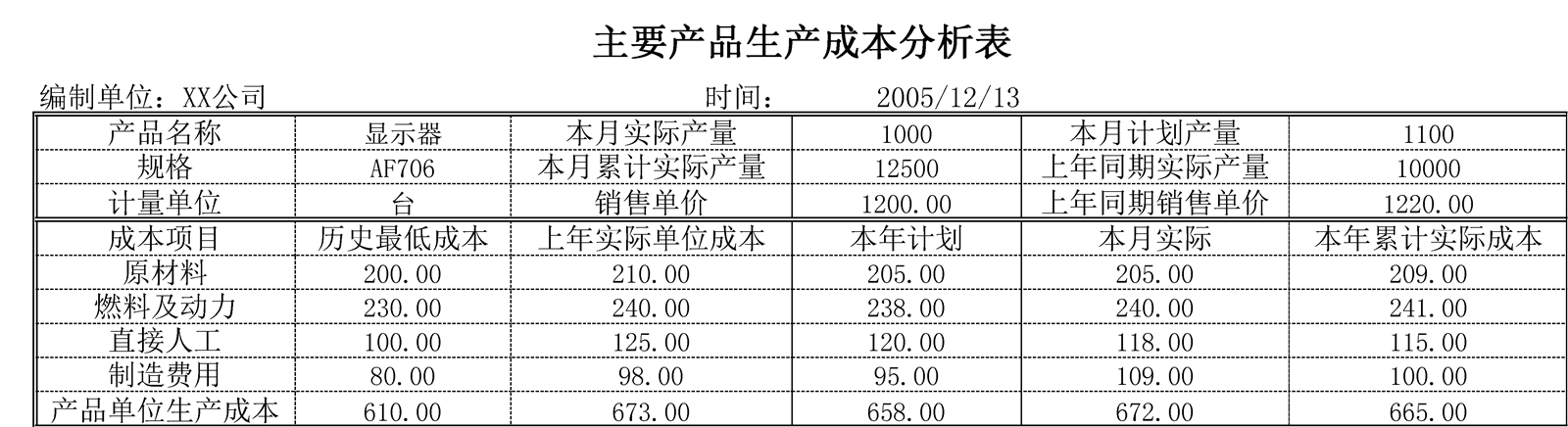 主要產品成本分析介紹: