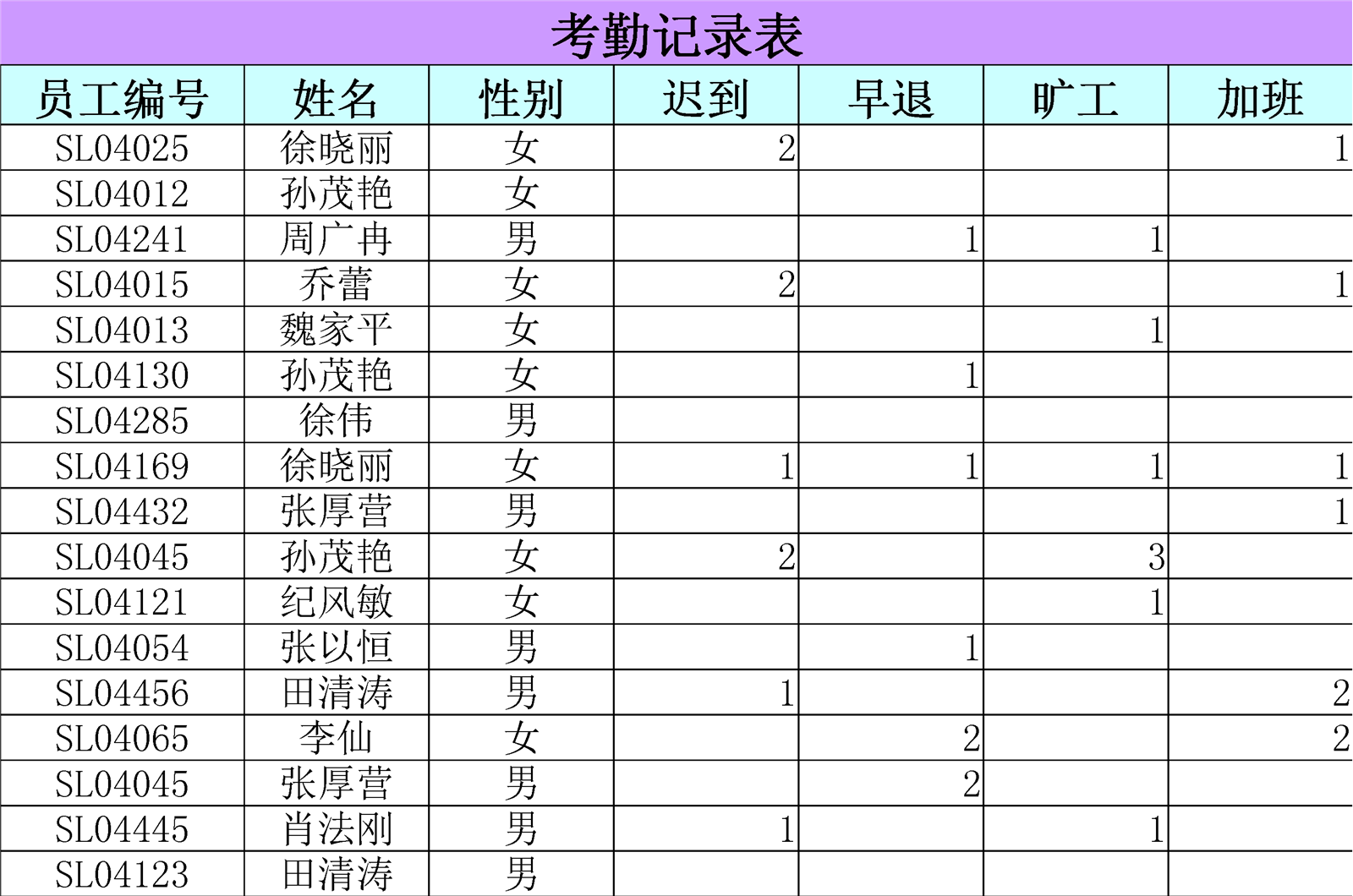 包含同名同姓員工的銷售部員工資料表介紹: