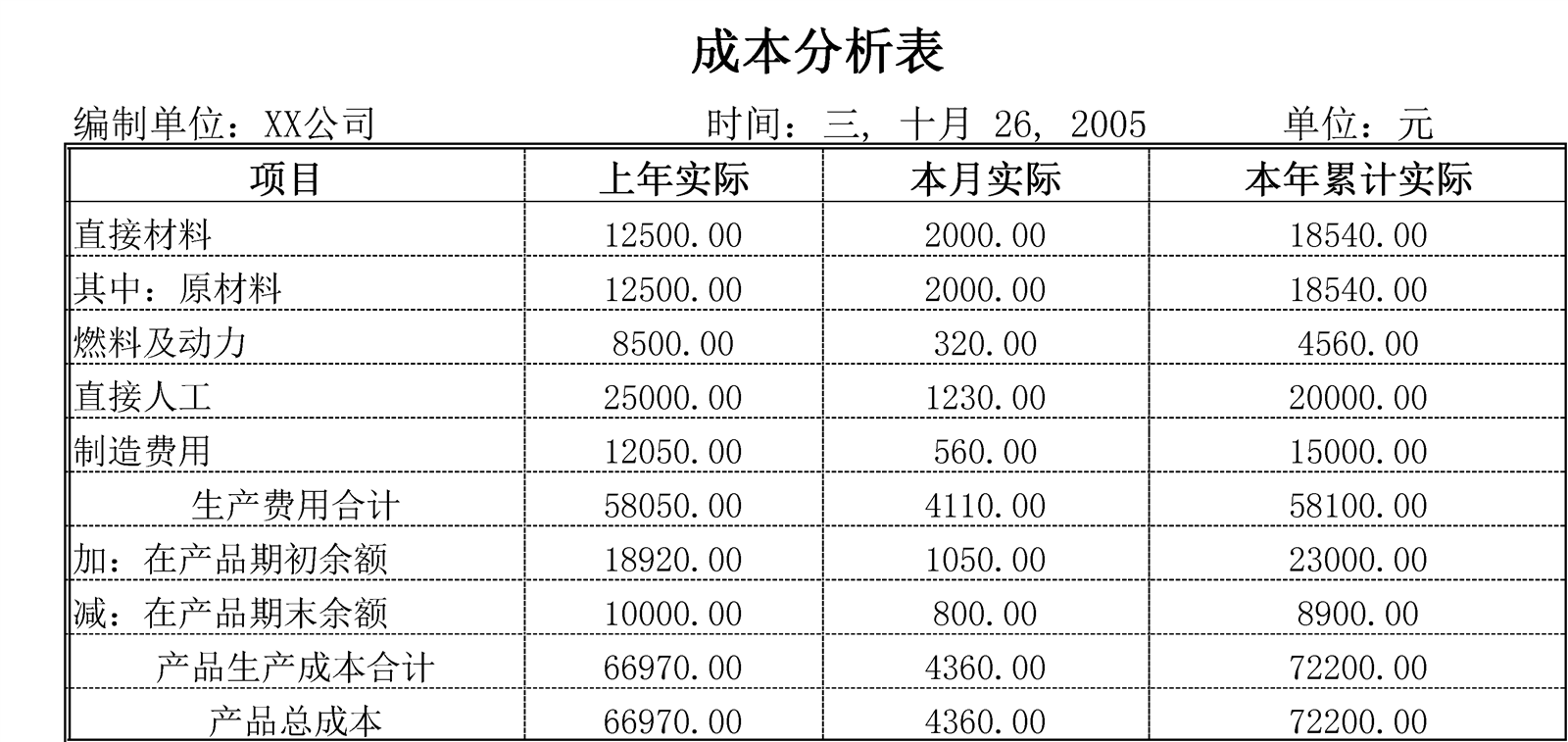成本分析介紹: