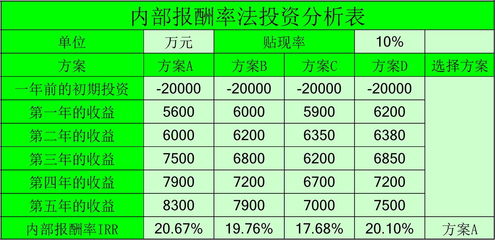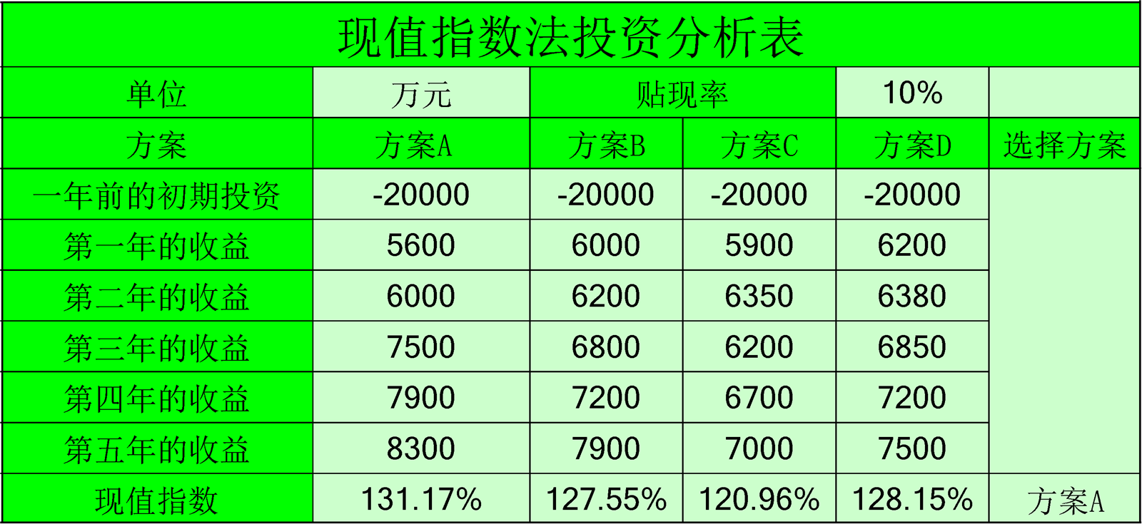 回收期法投資分析表介紹: