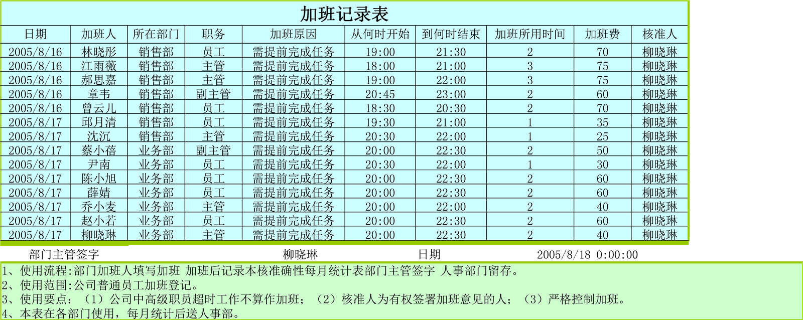 加班記錄表實例拓展介紹:
