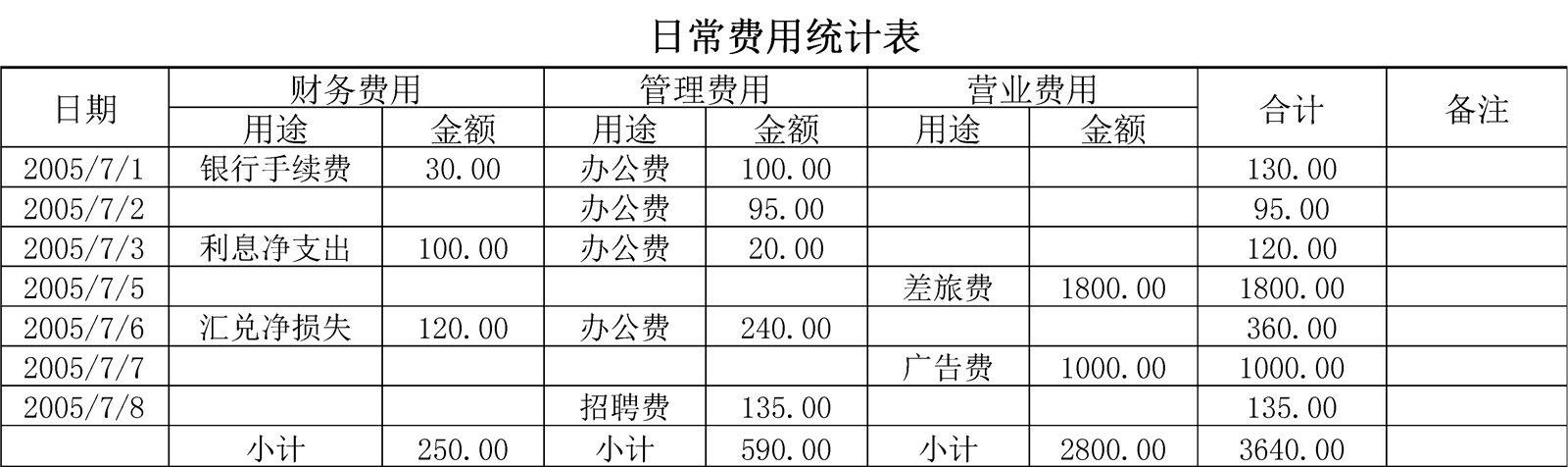 日常費用統計表介紹: