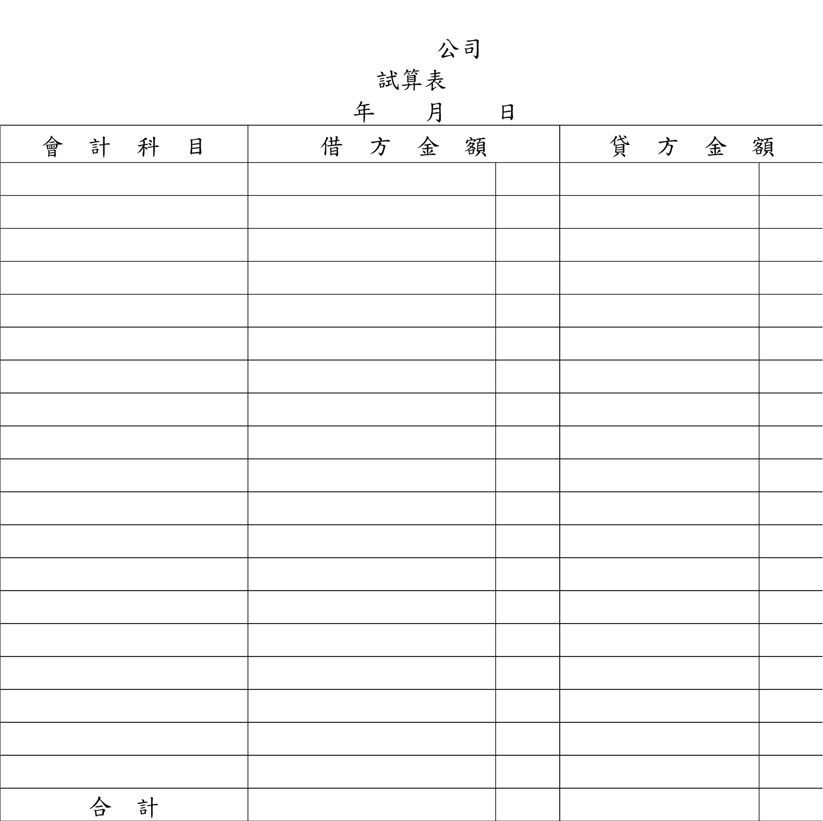 試窗表介紹: