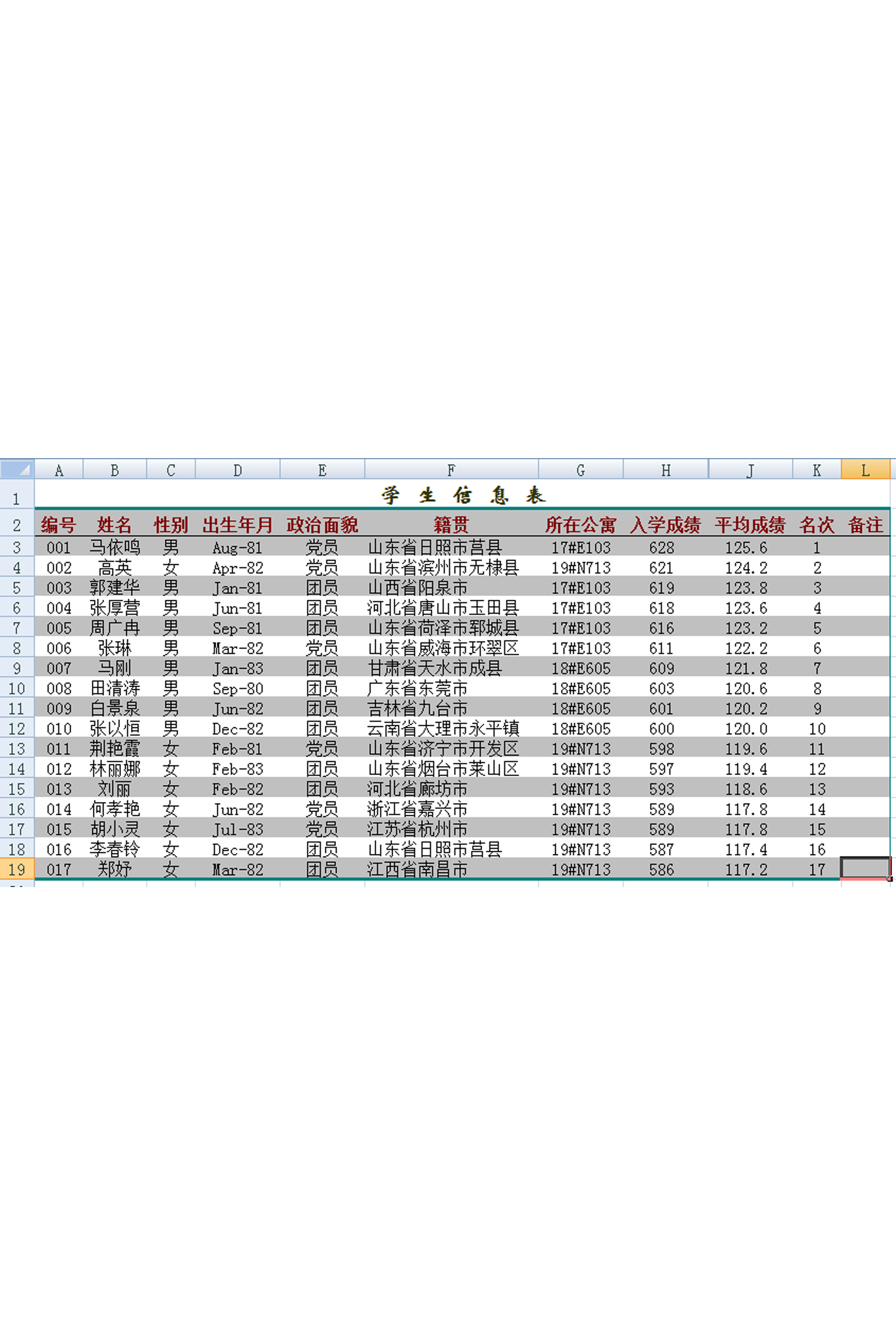 學生信息表介紹: